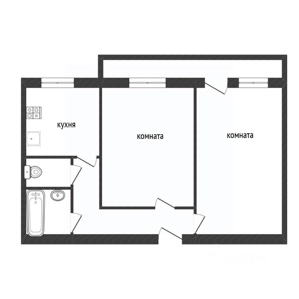 Площадь квартиры составляет 45,2 кв.м., она теплая и комфортная, с раздельным санузлом и большим застекленным балконом.