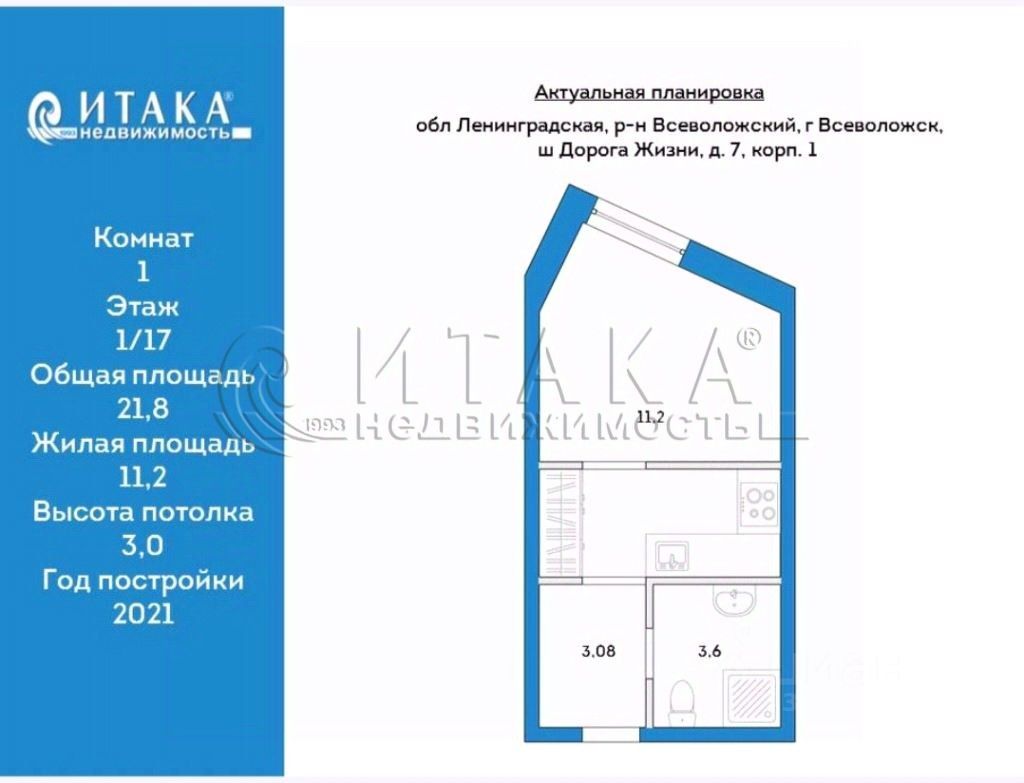 115486947 Студия 21.8 м² с 3-метровыми потолками. Фундамент вашего будущего!