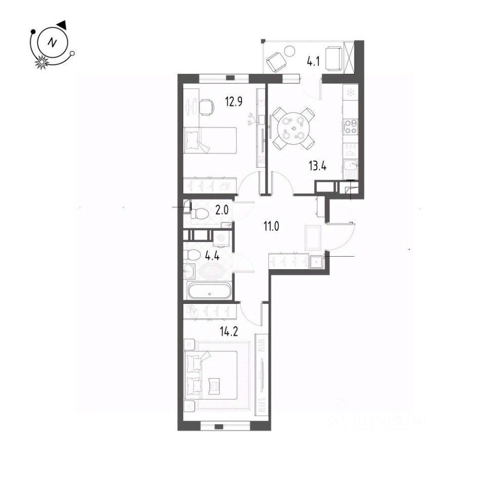 Дом комфорт-класса. На этаже 5 квартир. Закрытый двор. Парные выполнены в современном стиле. Квартира на 10 этаже , в доме 12 этажей. В доме современным подземным паркинг, а это прежде всего, безопасность вашего автомобиля. Также в доме есть предусмотрен пандус. Это дает возможность очень легко перемещаться с коляской или велосипедом. Безбарьерная входная группа- вход в парадную без порожка. Развитая инфраструктура, школа, детский сад и поликлиника - рядом. На данный момент до метро Купчино, м.Звездная и м.Шушары можно добраться за 10-12 минут на машине. Выезд на КАД, рядом, а так же в ближайшее время , рядом с домом будет остановка трамвая 'Купчино - Шушары', до ст. метро Купчино можно будет добраться за 10 минут на трамвае. Это трамвайная ветка уже готова к сдаче. Квартира светлая и двухсторонняя. Кухня-гостиная 13,4м2. Прихожая 11,0м2. Санузел 2,0 м2. Ванная комната 4,4 м2. Комнаты 14,2м2+12,9м2 Лоджия 4,1м2 Детские площадки прорезиненные. Инфраструктура развита. В шаговой доступности новая школа, магазины, пункты выдачи маркетплейсов, продуктовые магазины 24 часа.