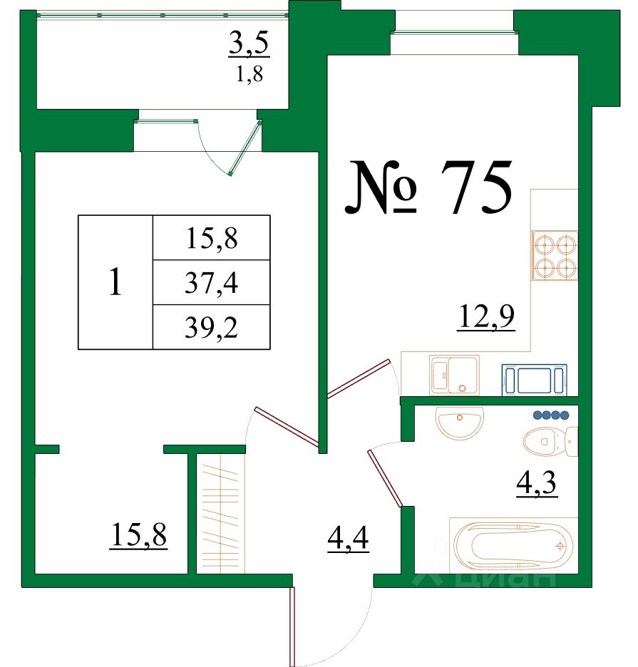 Продаётся 1-комнатная квартира в сданном доме (Корпус 5), срок сдачи: III-кв. 2025, общей площадью 39.2 кв.м., на 1 этаже. Ленинградская область, Гатчина, Красносельское шоссе