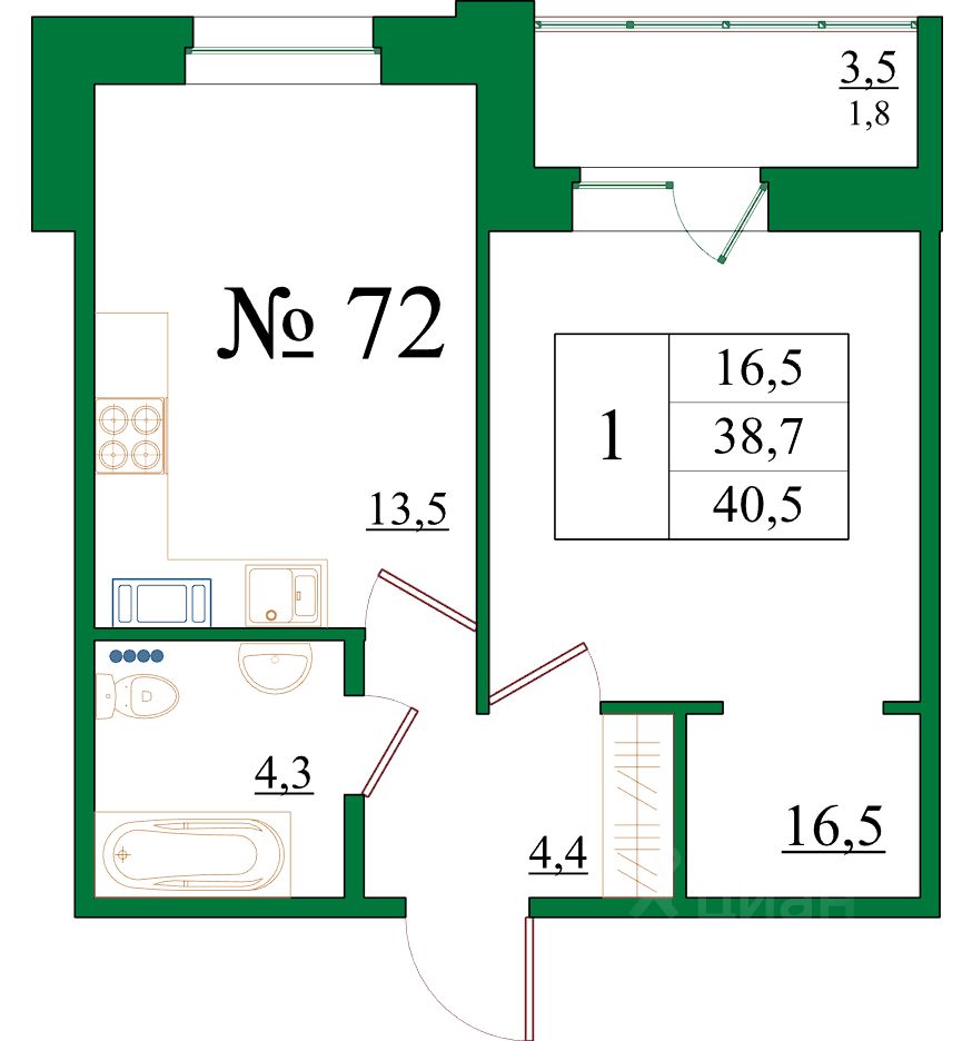 Продаётся 1-комнатная квартира в сданном доме (Корпус 2), срок сдачи: IV-кв. 2024, общей площадью 40.5 кв.м., на 7 этаже. Ленинградская область, Гатчина, Красносельское шоссе
