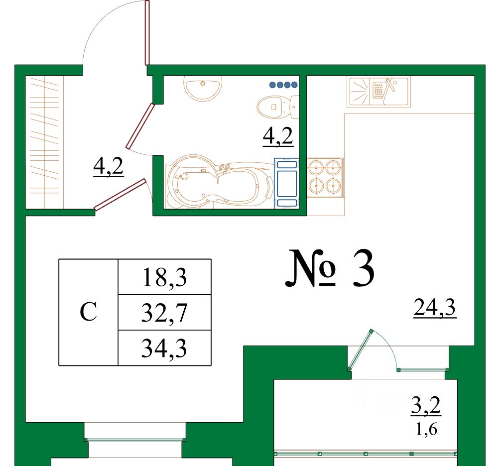 Продаётся студия в сданном доме (Красносельское шоссе, 4Ак2 (Корпус 3)), срок сдачи: III-кв. 2025, общей площадью 34.3 кв.м., на 6 этаже. Ленинградская область, Гатчина, Красносельское шоссе