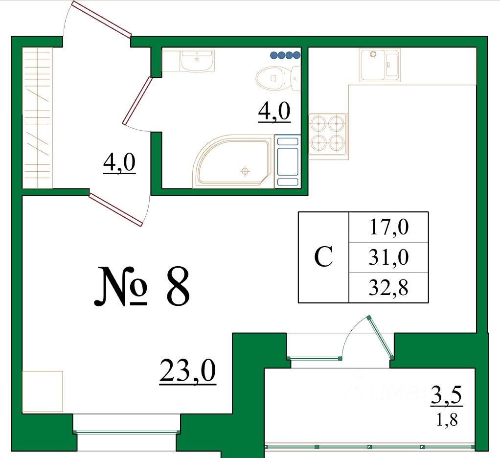 Комфортная высота потолков от 2,8 до 3,2 м.