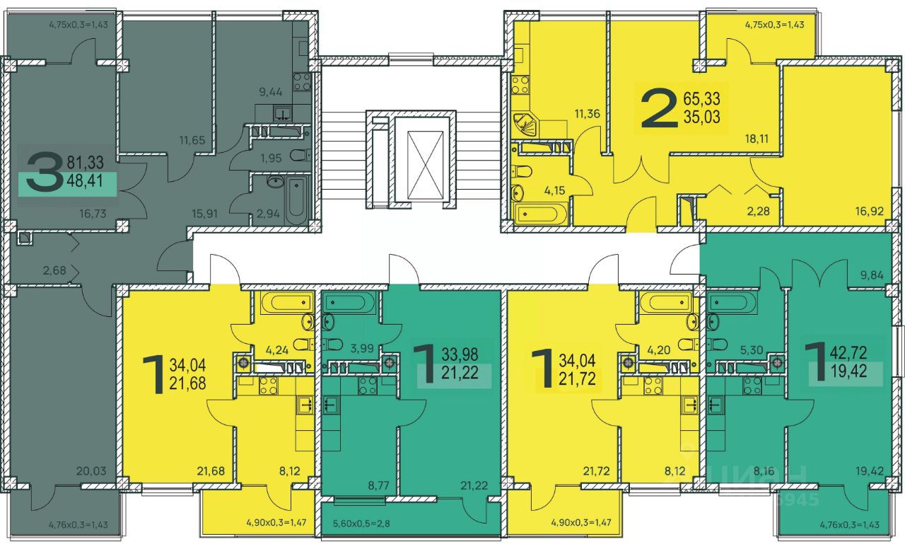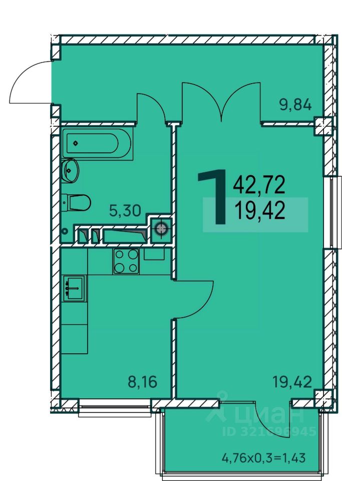 Общая площадь43,46 м2