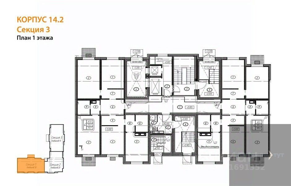 Квартира: 4 к 109,40 кв.м., 1 этаж в комплексе Яблоневые сады, 1 очередь, корп.14.2, сдача: 3кв. , этажей: 17, адрес Воронеж г., Загоровского ул., , Застройщик: ВЫБОР.