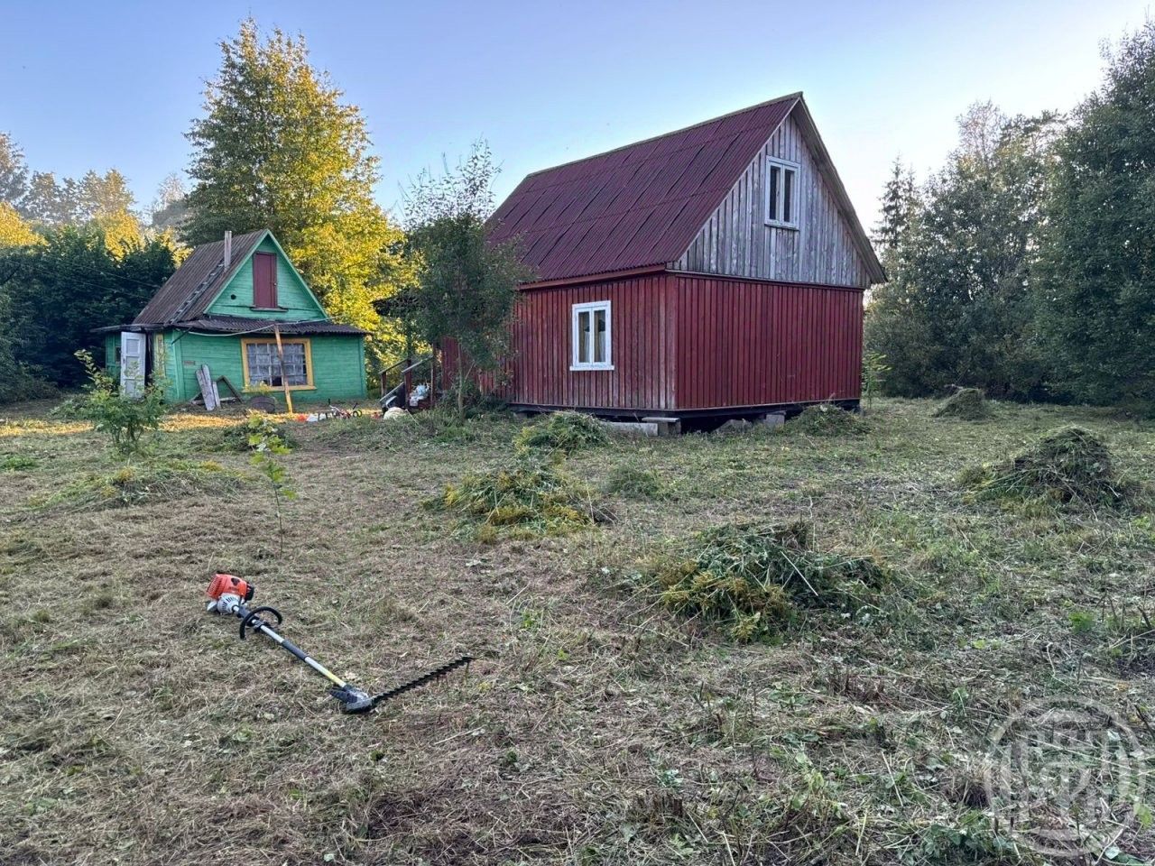 Участок ровный, правильной формы, огорожен. На участке растут яблони, черноплодка, кусты смородины. Парковка для двух автомобилей.