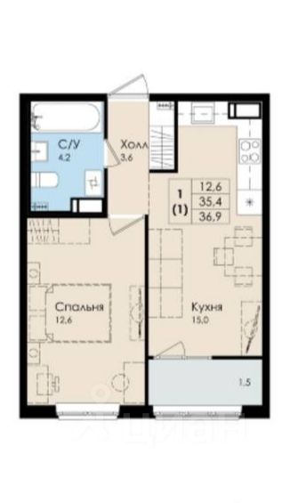 Продается уютная однокомнатная квартира в новом доме по адресу: Россия, Ленинградская область, Гатчина, бульвар Авиаторов, 9. Общая площадь квартиры составляет 35.6 кв. м, из них жилая площадь — 12.6 кв. м, а просторная кухня занимает 15.0 кв. м. Квартира расположена на 8-м этаже 9-этажного дома, построенного в 2021 году. Высота потолков — 2.7 метра, из окон открывается вид на тихий двор.