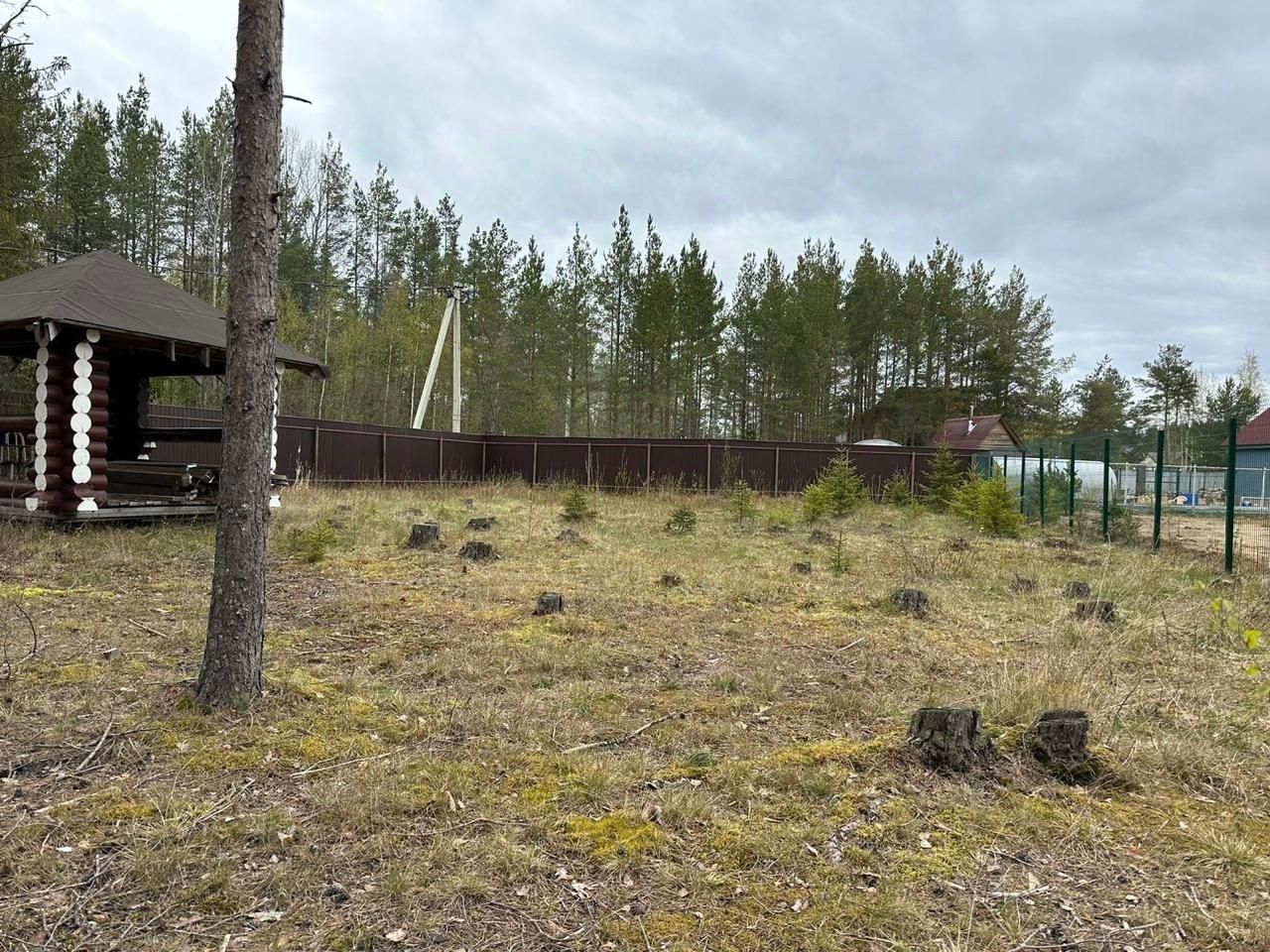На участках : беседка из бревна , каркас под навес для 3х авто.Можете навес обустроить под хозблок .Бетонные сваи под дом 8*8. С 2х сторон забор из металлопрофиля .Грибы и брусника- прекрасный бонус .