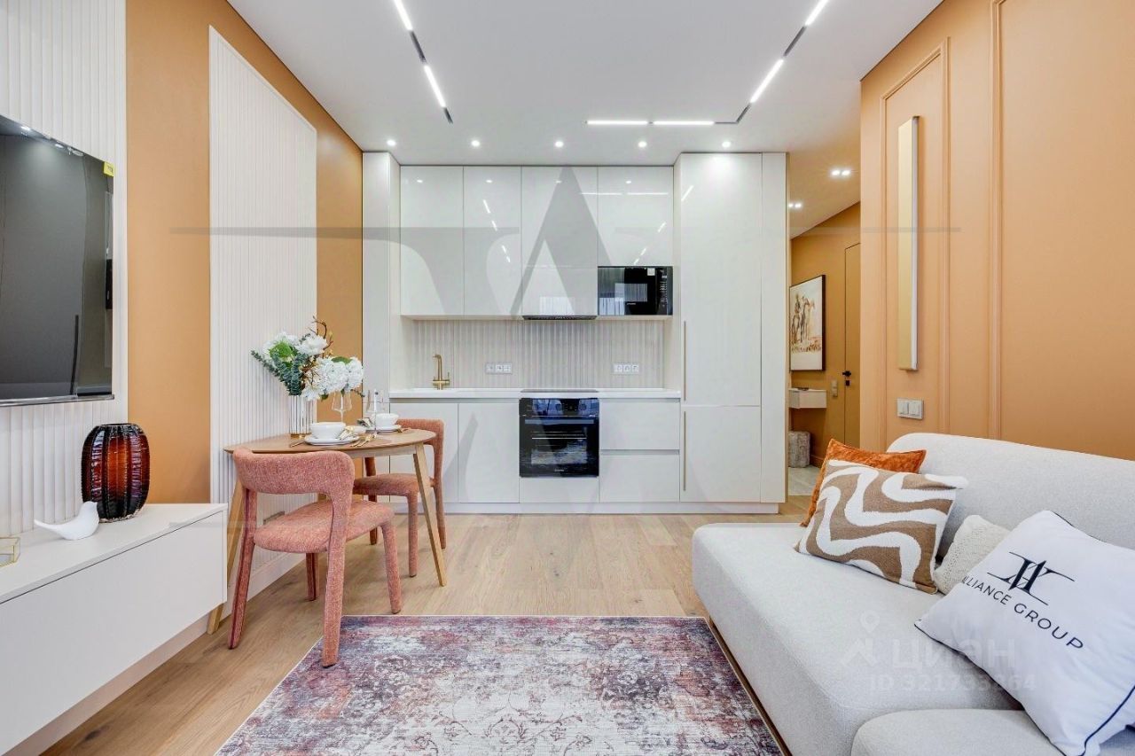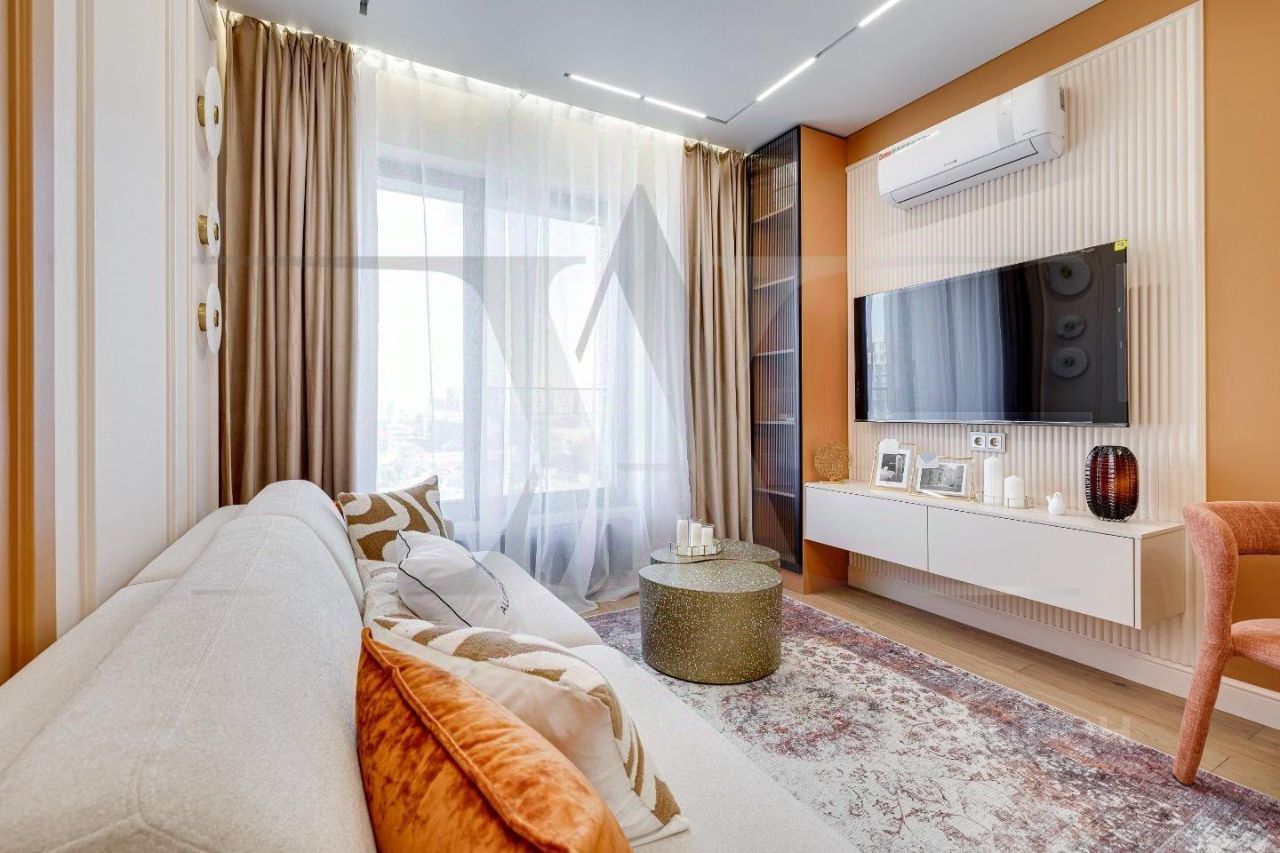 Новая однокомнатная комнатная квартира с просторной кухней гостиной и авторским дизайн-проектом от студии дизайна ''Design Alliance''. Ремонт квартиры выполнен командой студии ''Design Alliance''. Начиная от разработки проекта и заканчивая клинингом квартиры всю работу по созданию вашего идеального жилья берет на себя студия дизайна ''Design Alliance''.