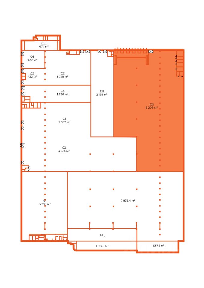 Складское помещение класса В площадью 8 208 м² от собствeнника.