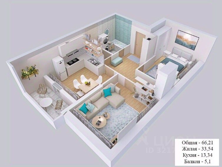 Общая площадь66 м2