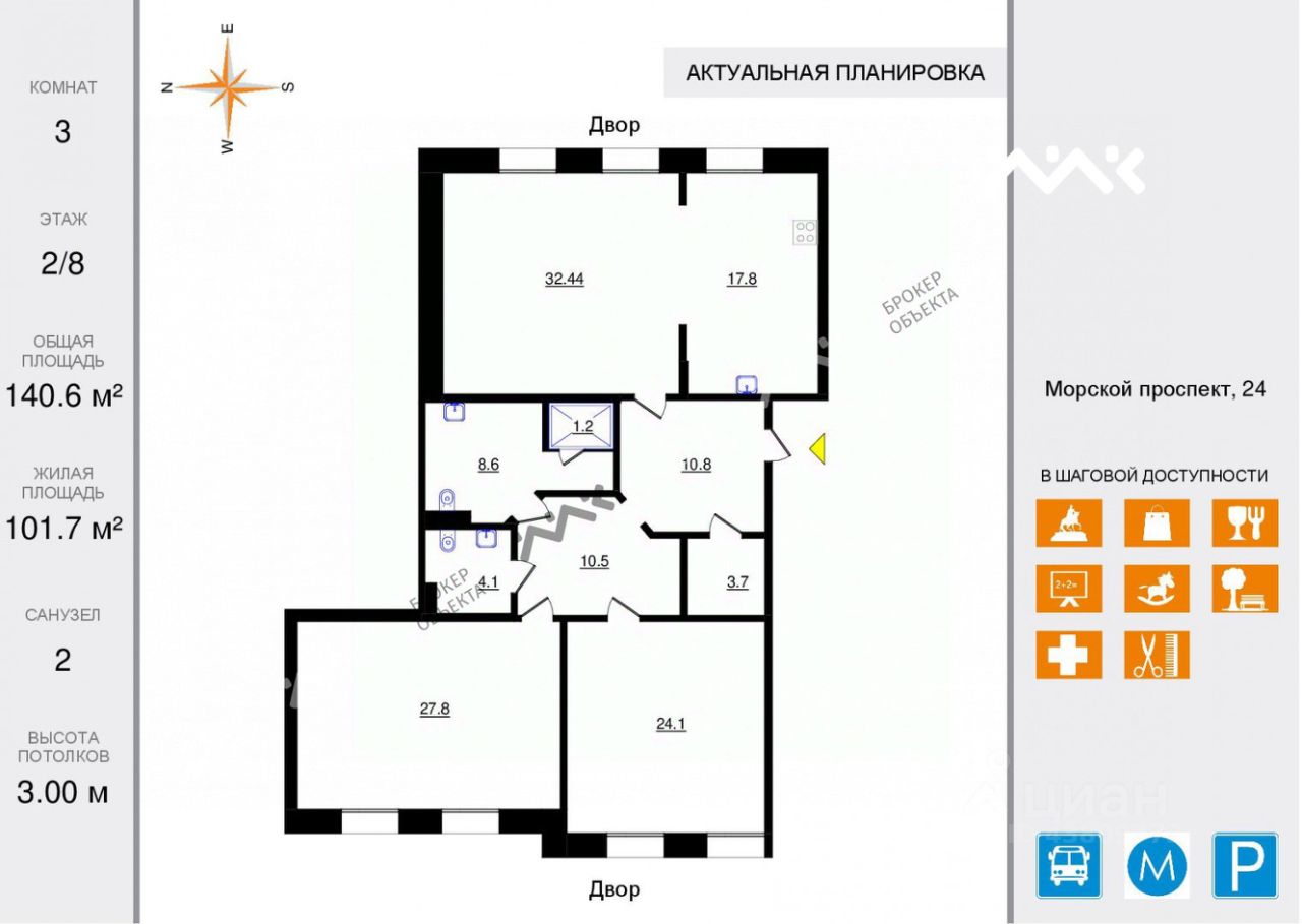 Квартира общей площадью 140,6 кв.метров. Каждый сантиметр используется максимально эффективно, и каждое помещение на своем месте Все это создает впечатление, что площадь квартиры гораздо больше. Зоны хранения, гардеробные, просторная кухня-гостиная и уютные спальни. За счет больших окон, квартира наполнена светом, а благодаря ландшафтному дизайну и просторной дворовой территории, ощущение, что Вы находитесь в своем собственном доме.
