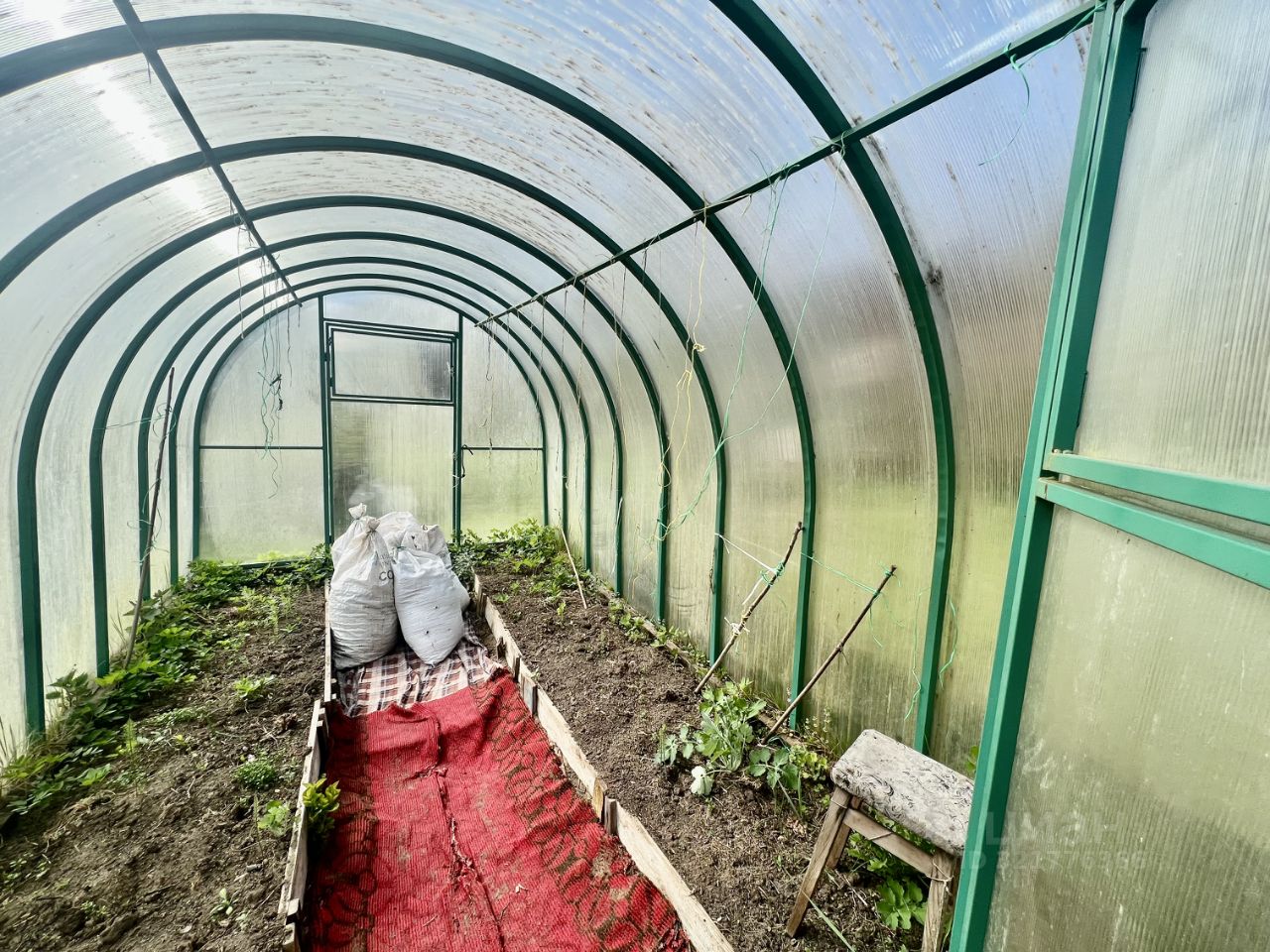 •На участке имеется дом-вагончик, где можно укрыться от непогоды, отличная теплица, садовые деревья.