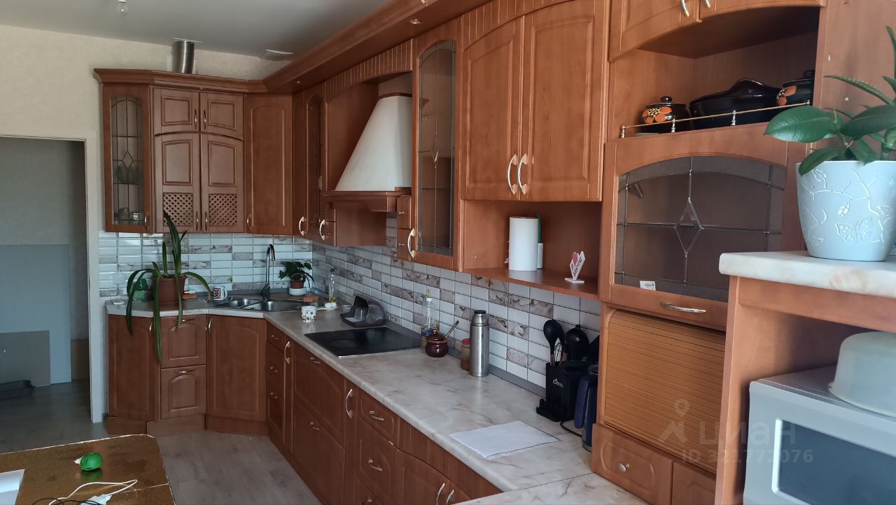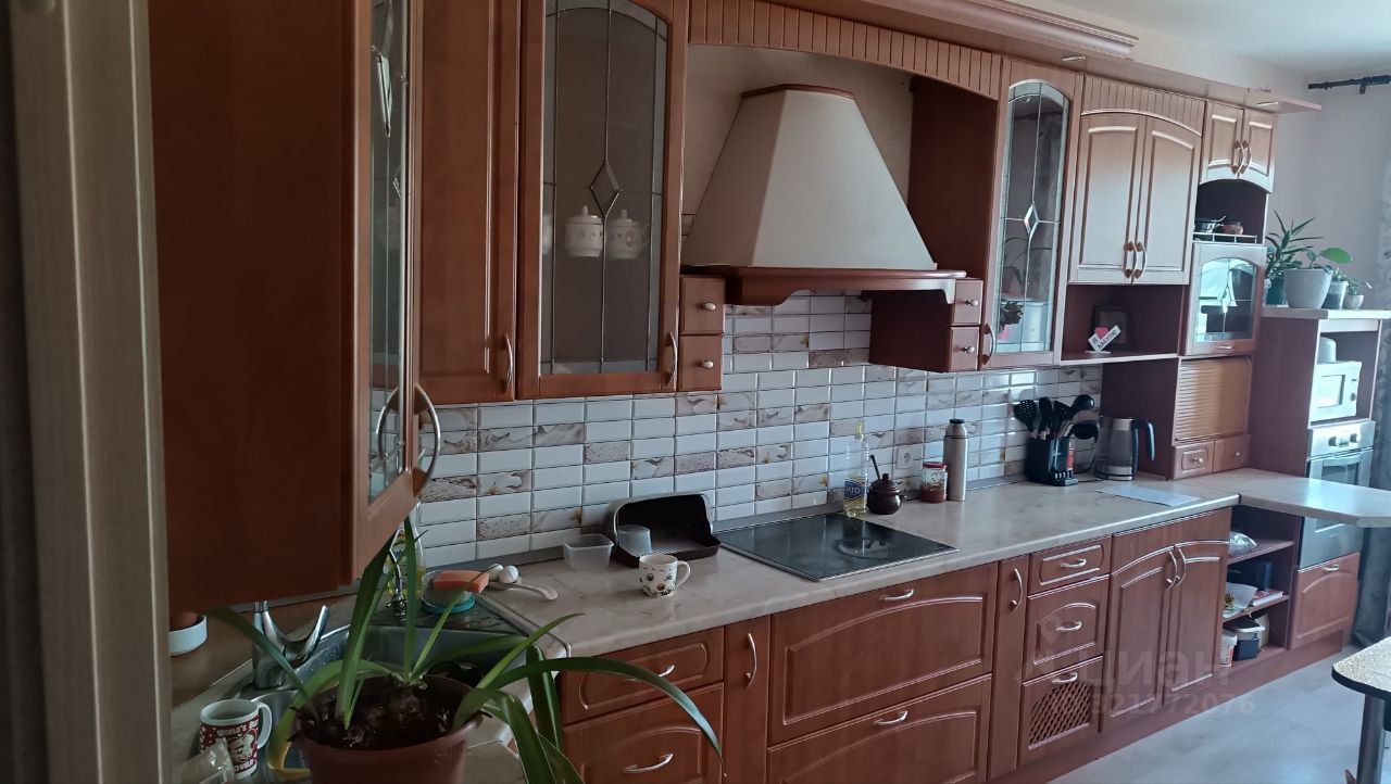 В кухне поставлен кухонный гарнитур, он остается новым жильцам. Классический, светлый, со всем необходимым.