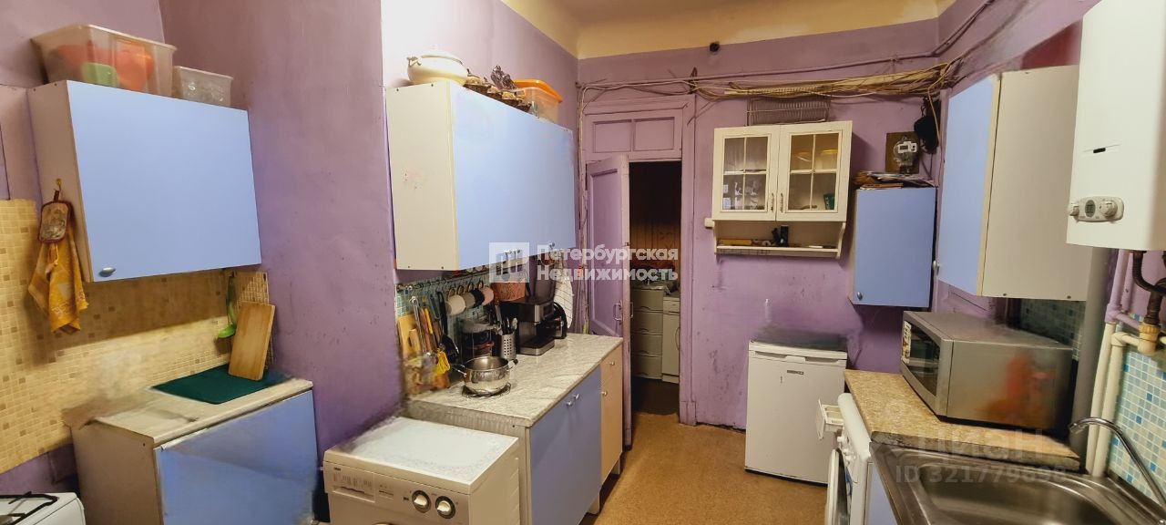 Малонаселённая квартира, 6 сособственников, живут 4 человека. Комната светлая, окна на юго-запад, на зелёный сквер. Полноценная кухня 14 метров, на кухне собственное место под стиральную машину. Полноценные ванная и туалет. Соседи спокойные.