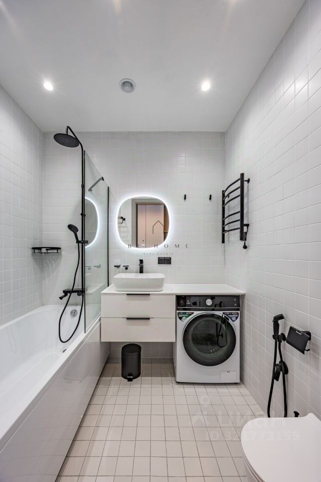 Просторная зона отдыха, обеденная зона с барной стойкой, рабочая зона, совмещенная ванная комната.