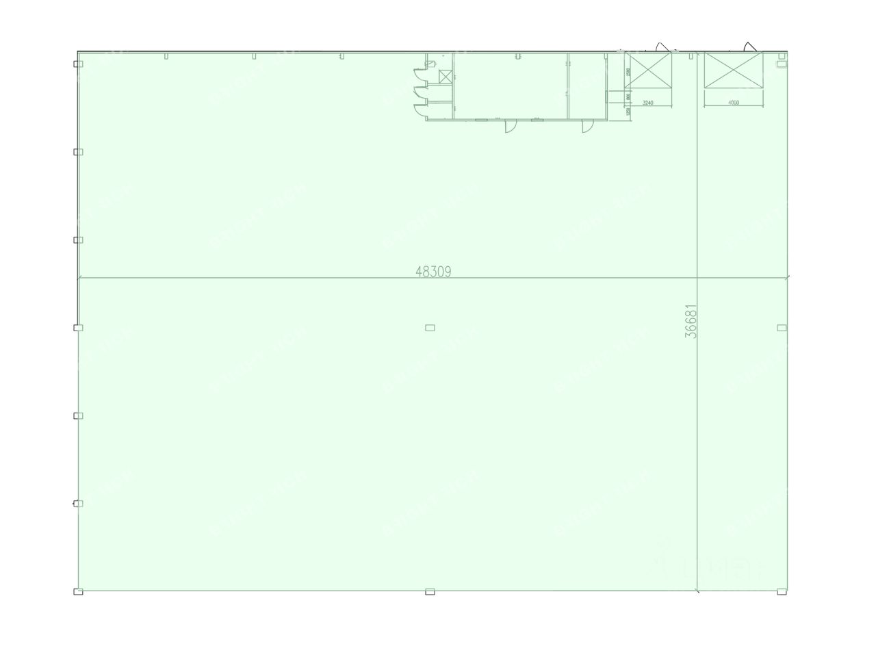 Характеристики: - Класс: B, - Тип склада: Сухой склад, - Высота потолков: 12.5 м, - Нагрузка на пол: 8 т/ кв.м, - Система пожаротушения: Внешние гидранты и внутренние пожарные краны, - Тип пола: С антипылевым покрытием, - Пожарная сигнализация: Да, - Шаг колонн: 18x24 м.