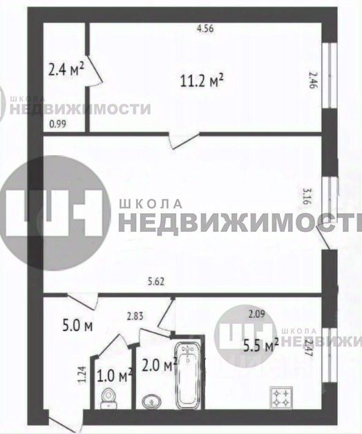 Общая площадь — 44,4 кв. м, из которых 28,9 кв. м — жилая площадь, 5,5 кв. м — кухня. Высота потолков — 2,6 м. Окна выходят во двор.