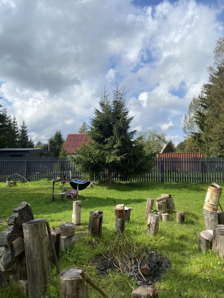 Продается земельный участок с выходом в лес. Садоводство хорошее, в зимний период чистят дороги, круглогодично работает магазин, от ж/ д станции 20 мин пешком, в летний период ходит автобус. Участок граничит с одним соседом. Хороший заезд на участок. Посажены яблони, кустарники. На участке есть недостроенный дом требующий ремонта, подробно расскажу по телефону.
