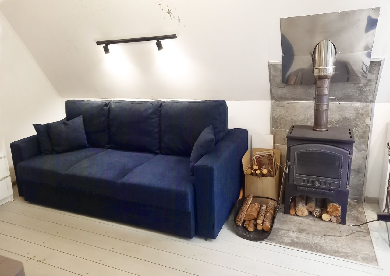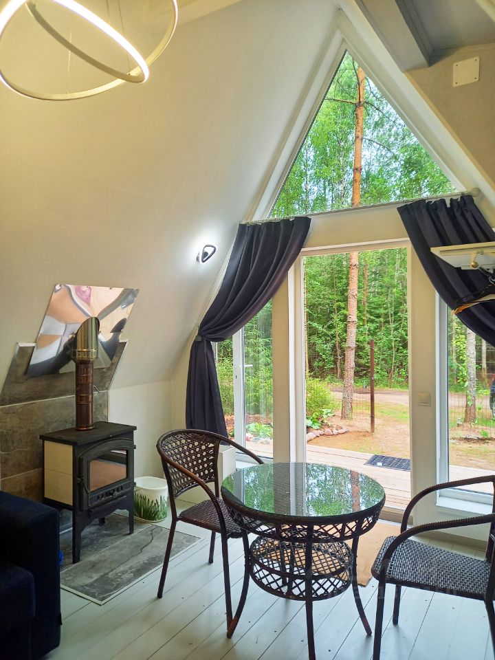 * * * ДОМ новый (2025 г постройки), тёплый, с камином, площадью 48 кв.м. Рассчитан 4 человек (есть детская кроватка): кухня, гостиная, спальня и санузел. Есть посуда, 2 холодильника, электроплита, духовка, микроволновка. В гостиной есть 2-спальный диван 200 х 140 см, комод для белья, обеденный стол, телевизор, камин. Отдельная спальня с двух-ярусной широкой (120 см) кроватью.