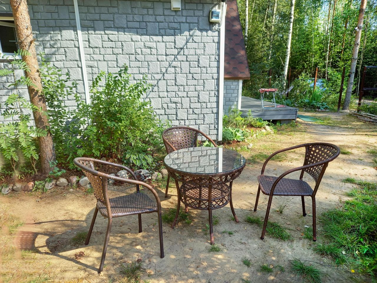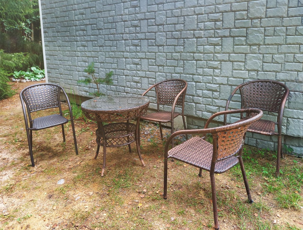 * * * Имеется красивая садовая мебель: комплект из ротанга (2 столика и 6 кресел) и комплект из сосны (обеденный стол и две скамейки). Во дворике есть мангал, дрова за небольшую плату (либо за услугу их распила и раскола). Вокруг - нетронутый лес, чистая экология! Рядом в 3-х км два больших озера: Большое и Малое Лебяжьи.