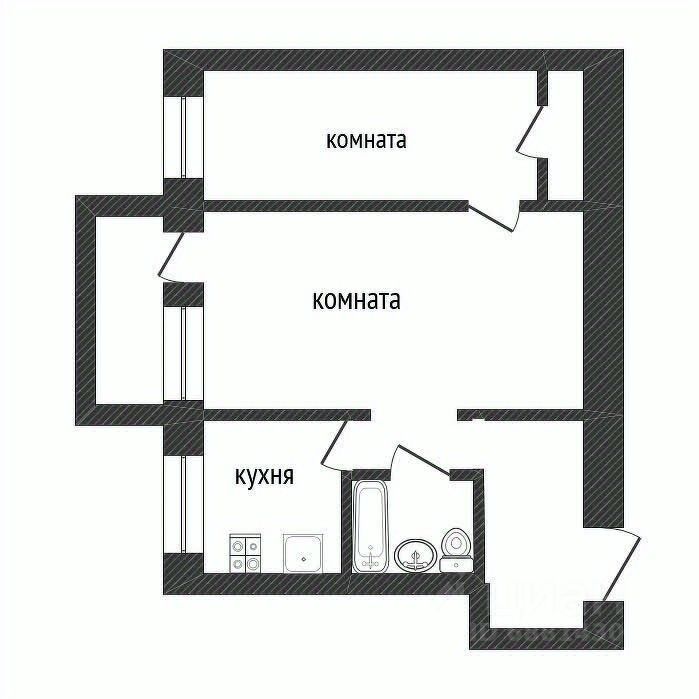 Общая площадь 43.2 м2, жилая площадь 26 м2