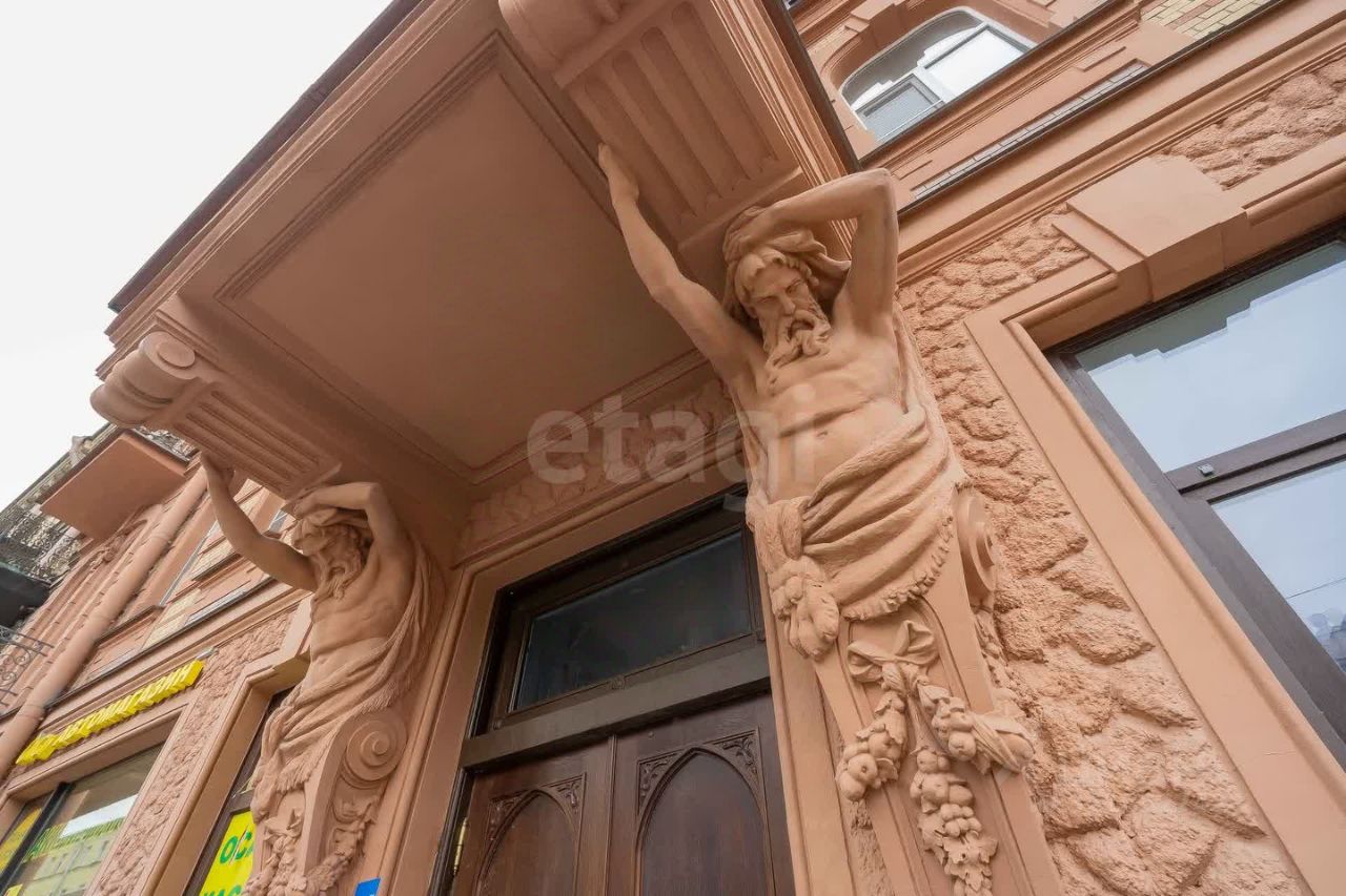 Доходный кирпичный дом 1902 года постройки. Фасад выполнен в стиле модерн, у парадной установлены величественные Атланты, которые придают историческому зданию особый шарм.