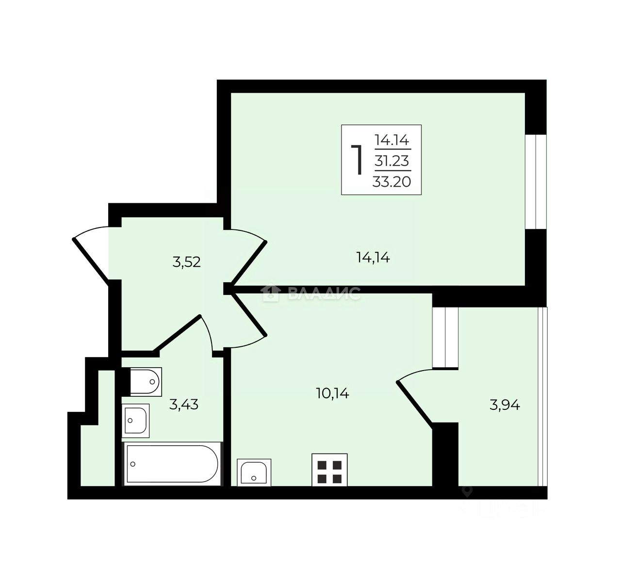 В квартире выполнен качественный чистовой ремонт, что позволит вам сразу заселиться и наслаждаться комфортом. Жилая площадь составляет 14,14 кв. м, а кухня — 10,14 кв. м. Совмещённый санузел обеспечит удобство и функциональность.