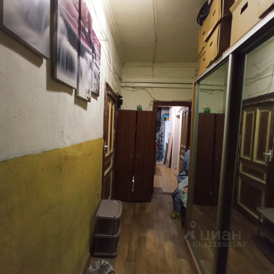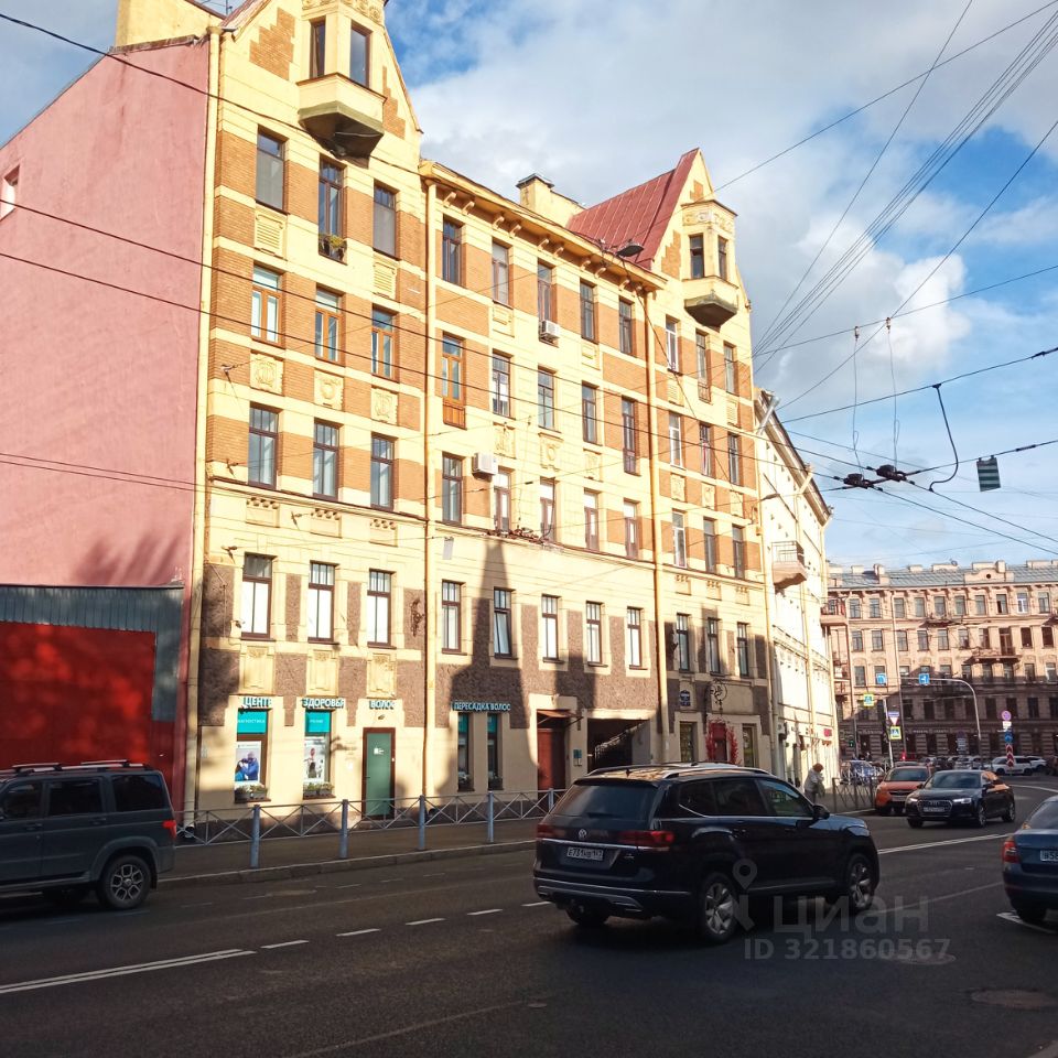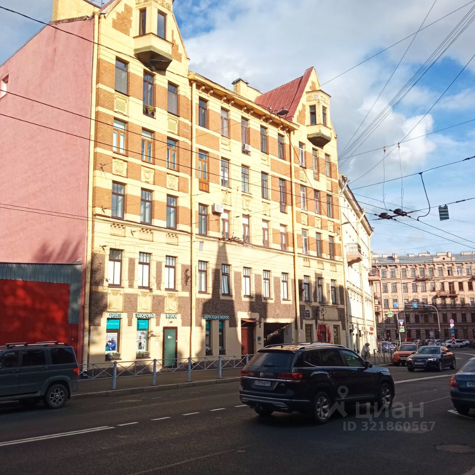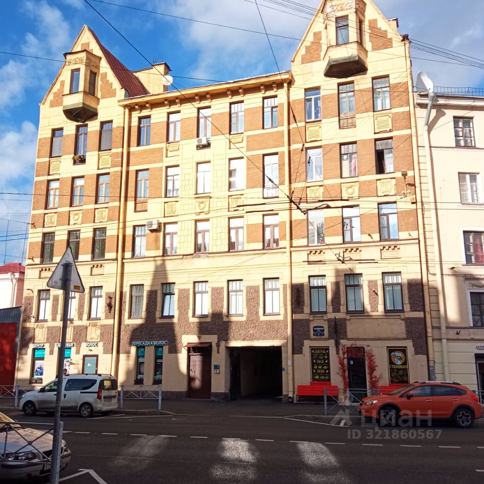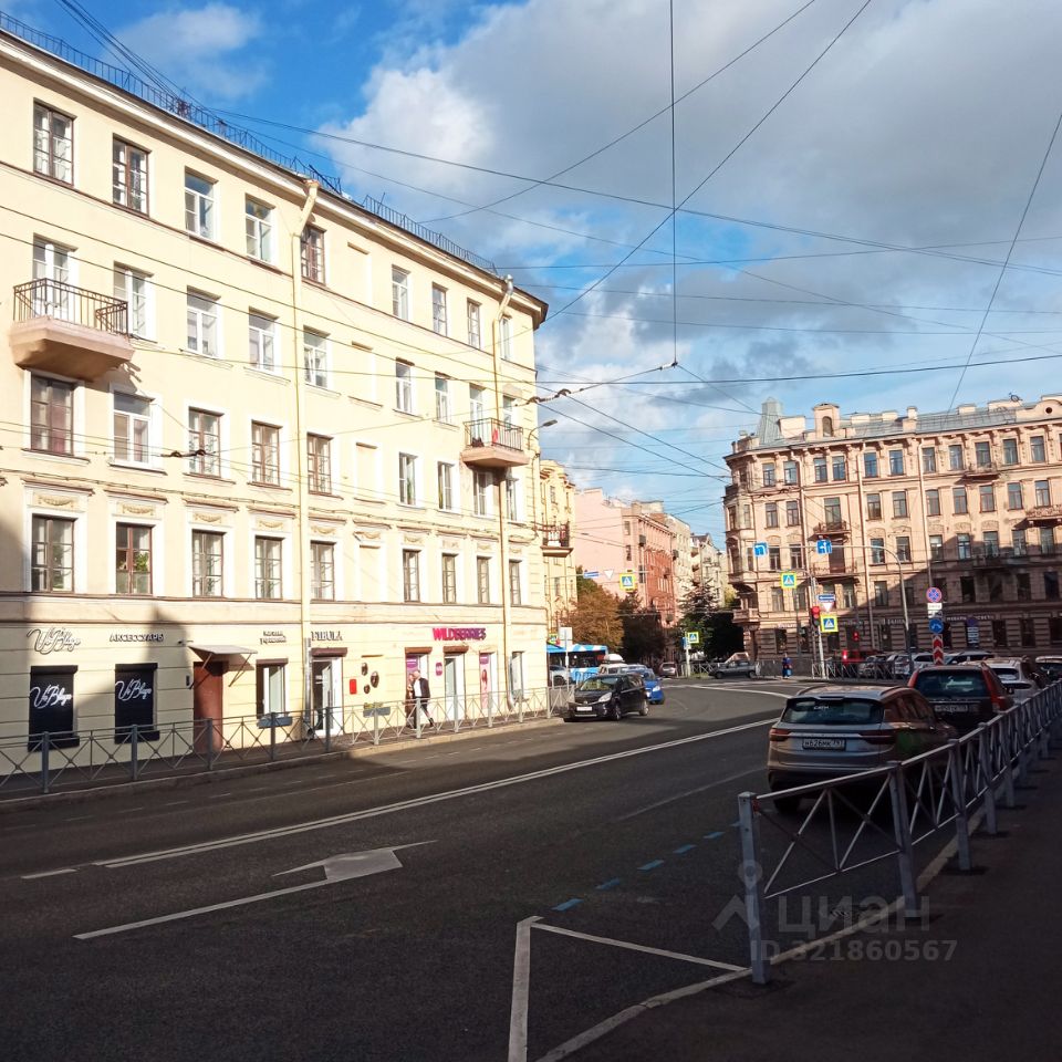 Комната 13.4 метров квадратных, прямоугольной формы, в 5-ти комнатной квартире, окно выходит во двор. Квартира двухсторонняя, второй дом от Большого проспекта ПС. Вход парадный, лестница парадная, установлен домофон.Дом 5-6+мансарда этажей. Окна квартиры выходят на улицу, Владимирский собор и во двор. Лифта нет. Кухня просторная, 12,7 м2, две газовые плиты, газовая колонка, также есть место для стиральной машины. К кухне прилегает комната 8 м2 МОП, имеется выход на чёрную лестницу. Высота помещения 3,23 метра. Квартира малонаселенная, 5 собственников.