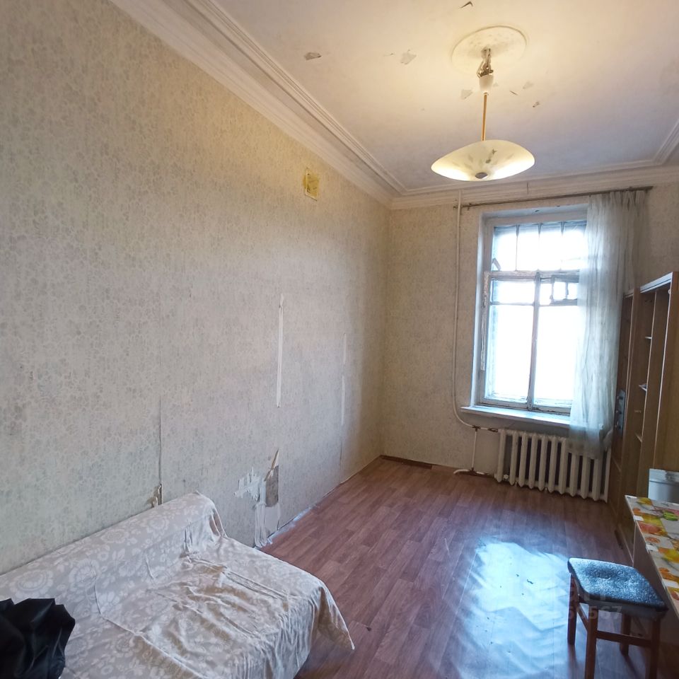 Комната 13.4 метров квадратных, прямоугольной формы, в 5-ти комнатной квартире, окно выходит во двор. Квартира двухсторонняя, второй дом от Большого проспекта ПС. Вход парадный, лестница парадная, установлен домофон.Дом 5-6+мансарда этажей. Окна квартиры выходят на улицу, Владимирский собор и во двор. Лифта нет. Кухня просторная, 12,7 м2, две газовые плиты, газовая колонка, также есть место для стиральной машины. К кухне прилегает комната 8 м2 МОП, имеется выход на чёрную лестницу. Высота помещения 3,23 метра. Квартира малонаселенная, 5 собственников. Рядом метро Спортивная, 5 минут пешком, развитая инфраструктура, сквер для прогулок, очень красивый Большой проспект, много магазинов и мест для культурного проведения досуга, спорт комплекс Юбилейный, Князь-Владимирский собор, строится красивая набережная и театр Якобсона. Комната и квартира требуют ремонта.
