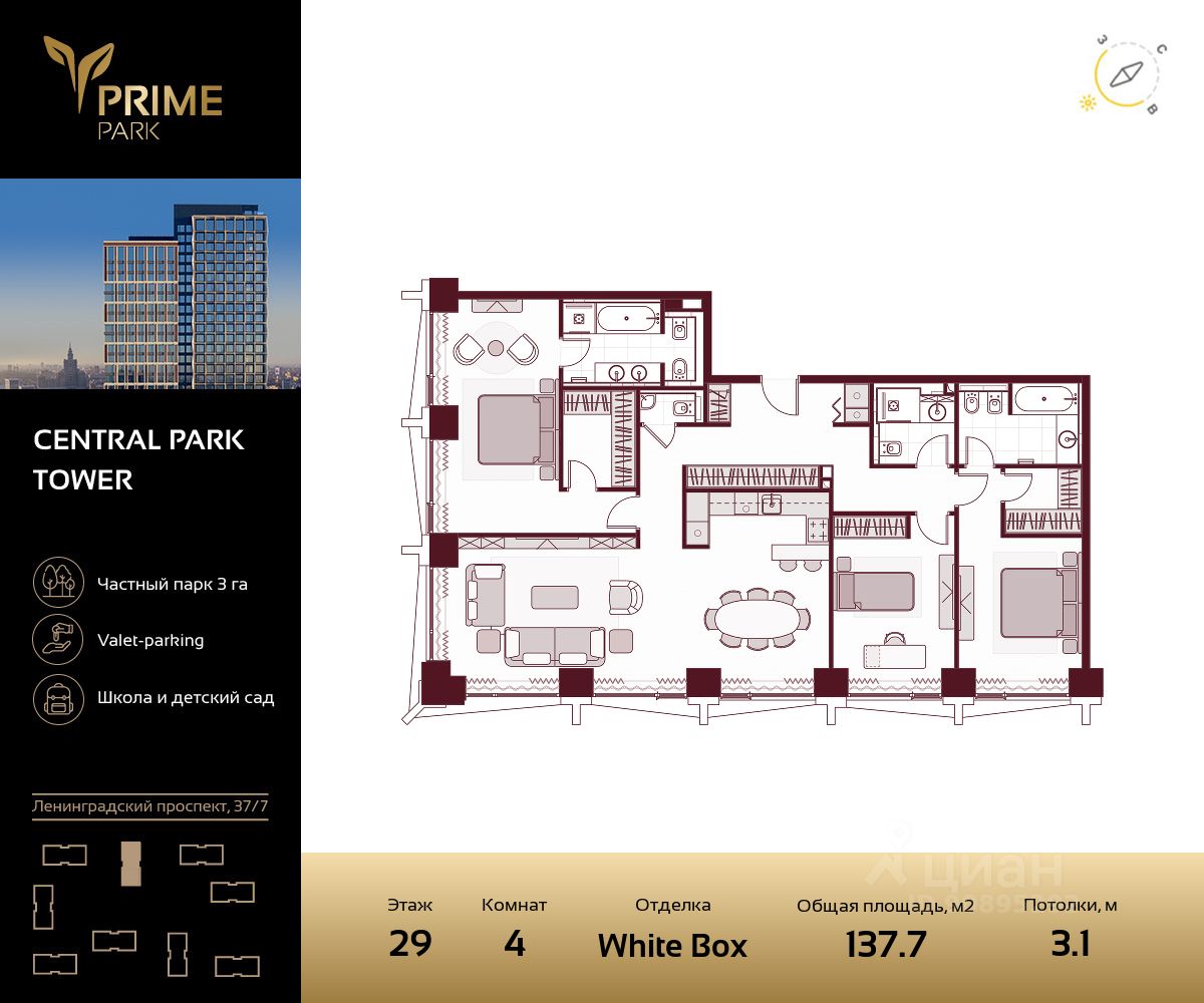 продам 4-к, Ленинградский проспект, 37/7126 946 637 ₽