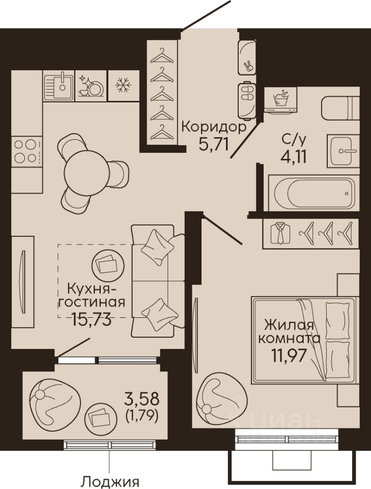 Общая площадь39,31 м2