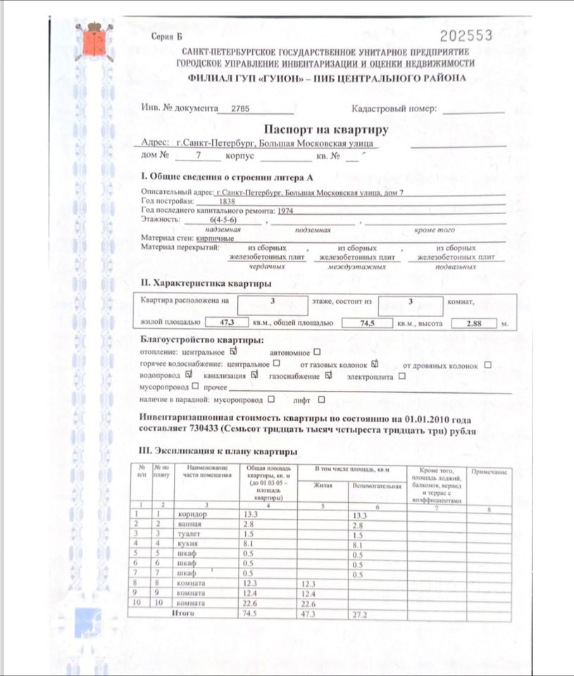 продам 3-к, Большая Московская, 719 500 000 ₽