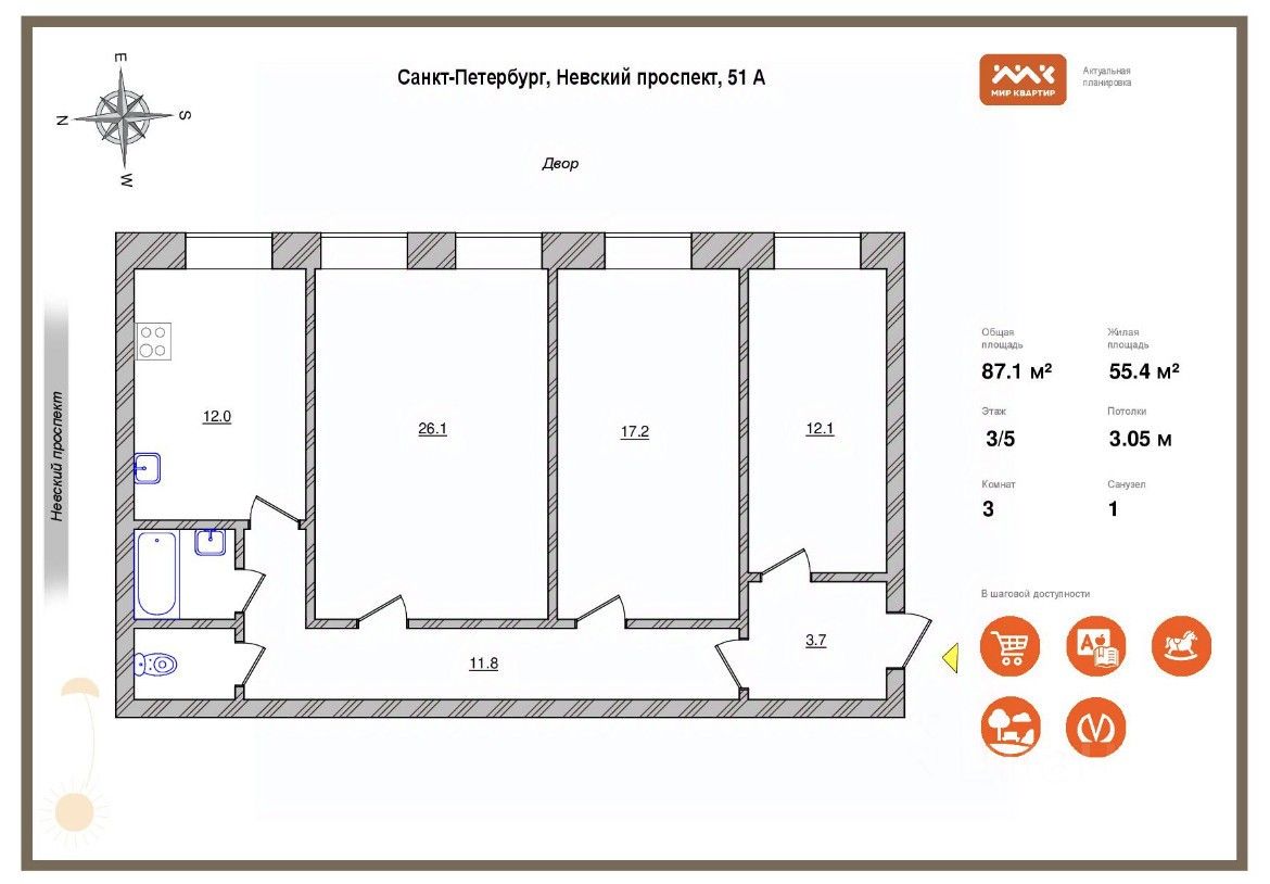 продам 3-к, Невский проспект, 5119 301 000 ₽