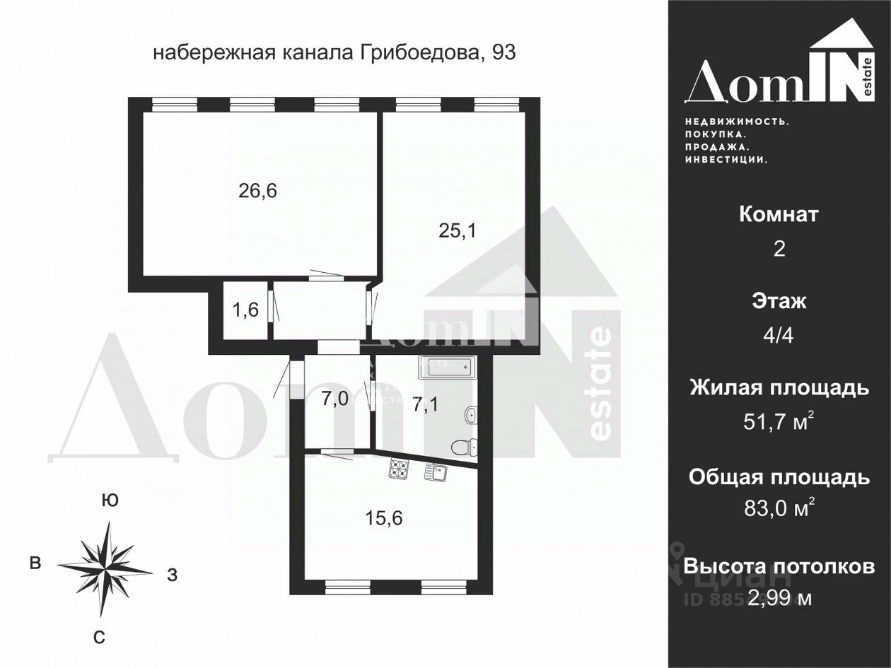 продам 2-к, Канала Грибоедова набережная, 9329 999 999 ₽