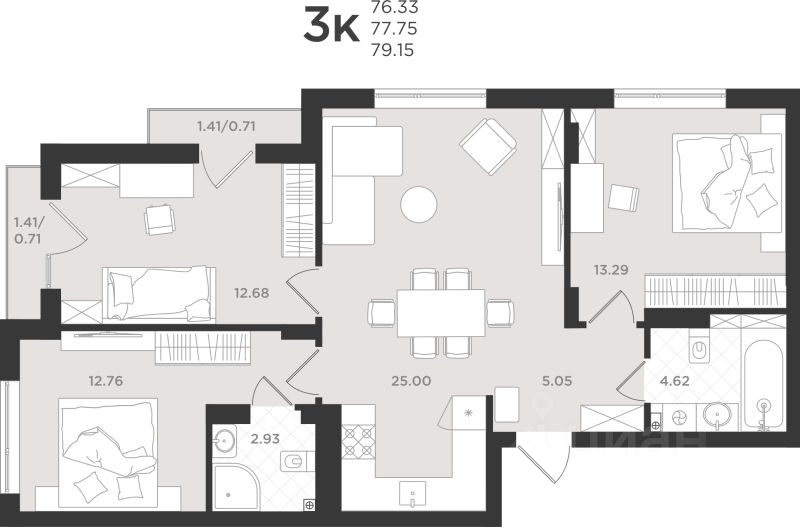 Общая площадь77,75 м2