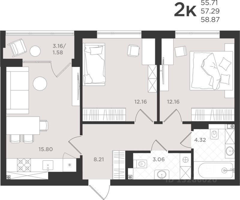 Общая площадь57,29 м2