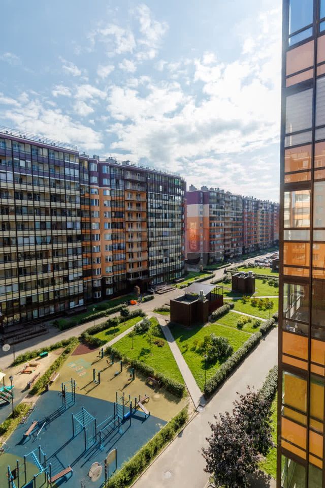 Комфортный 7-й этаж, вид из окон - в залитый солнцем благоустроенный двор. Утренний кофе на балконе с видом на зелень и цветущие клумбы станет отличным началом дня. Закрытая территория комплекса обеспечивает безопасность и приватность проживания.