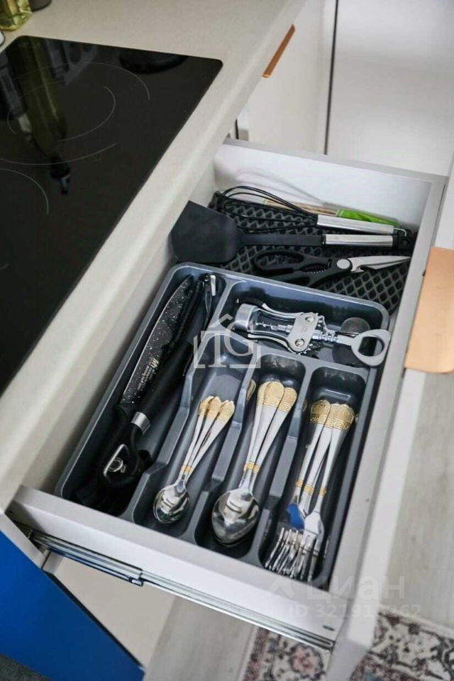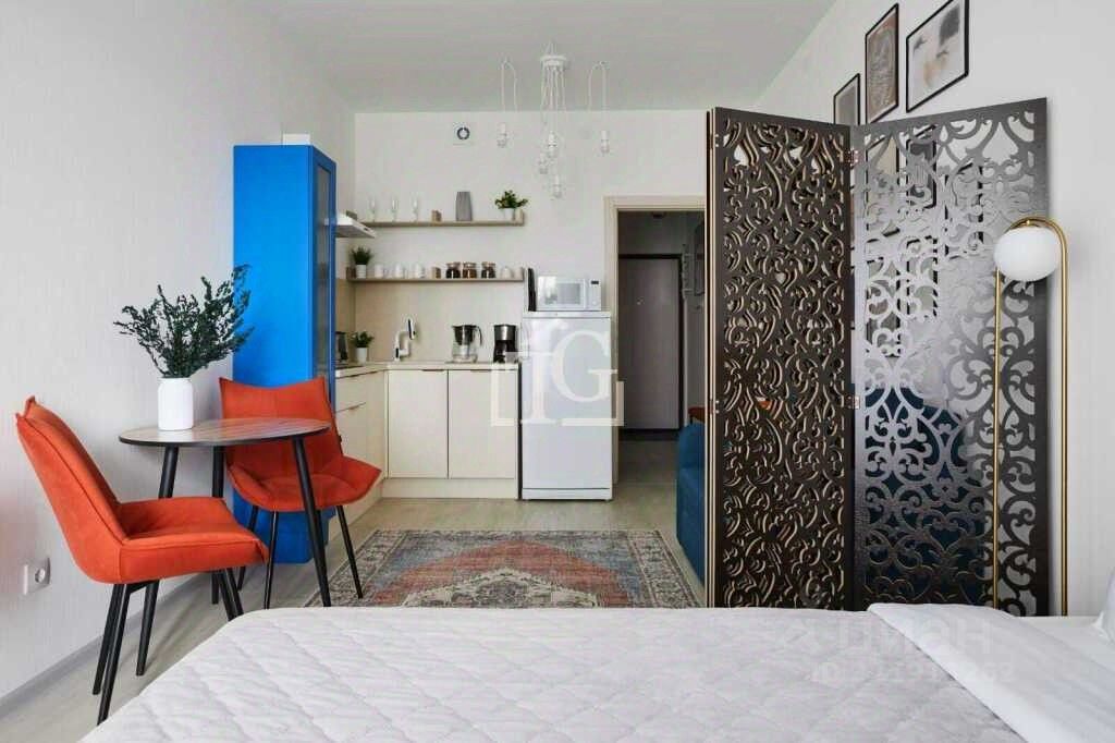 Жилая и кухонная зоны удобно, рационально и гармонично расположены в едином пространстве, практически не уступая однокомнатной квартире. Санузел совмещённый, где поместились и душевая кабина и стиральная машина. Большая гардеробная позволяет заметно разгрузить жилое пространство.
