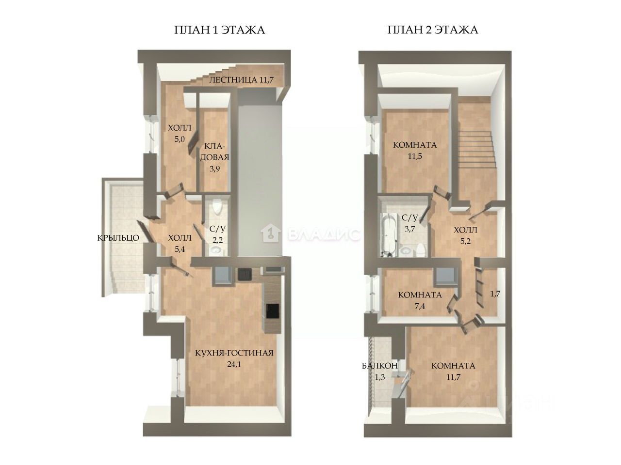-ОТДЕЛЬНЫЙ ВХОД С УЛИЦЫ, не через парадную, -Квартира занимает 1 и 2 этаж дома, -2 этажа: на первом - кухня-гостиная, с/у и кладовая, на втором - три комнаты и с/у. -Первый этаж без отделки (сделана полная разводка электрики), на втором этаже сделана предчистовая (оштукатурены стены, на полу стяжка, полная разводка электрики). -Окна - стеклопакеты. -Светлая лестница на второй этаж с окном! -Общий метраж 97,1 метр (по помещениям см. планировку в фото). -Потолки 2,6 м на первом этаже, на втором - 2,59 м, на лестнице до 6 метров!