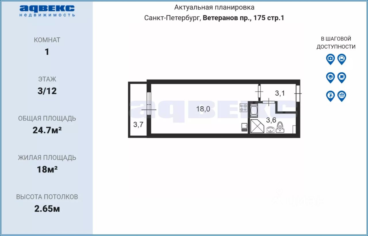 ID: 1909847 Отличная уютная квартира-студия в прямой продаже, быстрый выход на сделку. Новом красивый микрорайон. ЖК Солнечный город. Квартира в форме правильного прямоугольника ближе к квадрату. Никто не проживает, никогда не сдавалась, нет зарегистрированных, один взрослый собственник. Без обременений, приобреталась у застройщика по договору долевого участия. Документы к сделке готовы. Расположена на солнечной стороне с хорошими видовыми характеристиками на тихую рекреационную зону отдыха, с отличным расположением на комфортном 3 этаже. Отделка светлая, санузел ''Итальянские коллекции''. Счетчики на воду, отопление и электричество. Домофон. Закрытая охраняемая благоустроенная территория. Безбарьерный вход в парадную 15 очень удобный как с улицы, так и со двора.