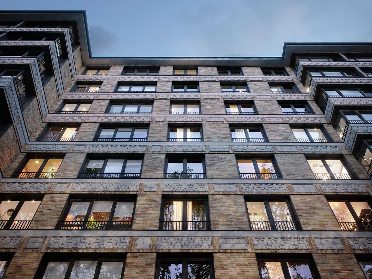 В облике дома отражены характерные черты петербургской исторической архитектуры: фактурная кирпичная кладка песочных оттенков, декоративные вставки и разностилевое остекление. В клубном доме N8 небольшое количество квартир — всего 281, от трех на этаже. Это позволило создать атмосферу приватности и камерности, а еще — воплотить замысел архитекторов, стремившихся наполнить дом квартирами с панорамными видами на город.