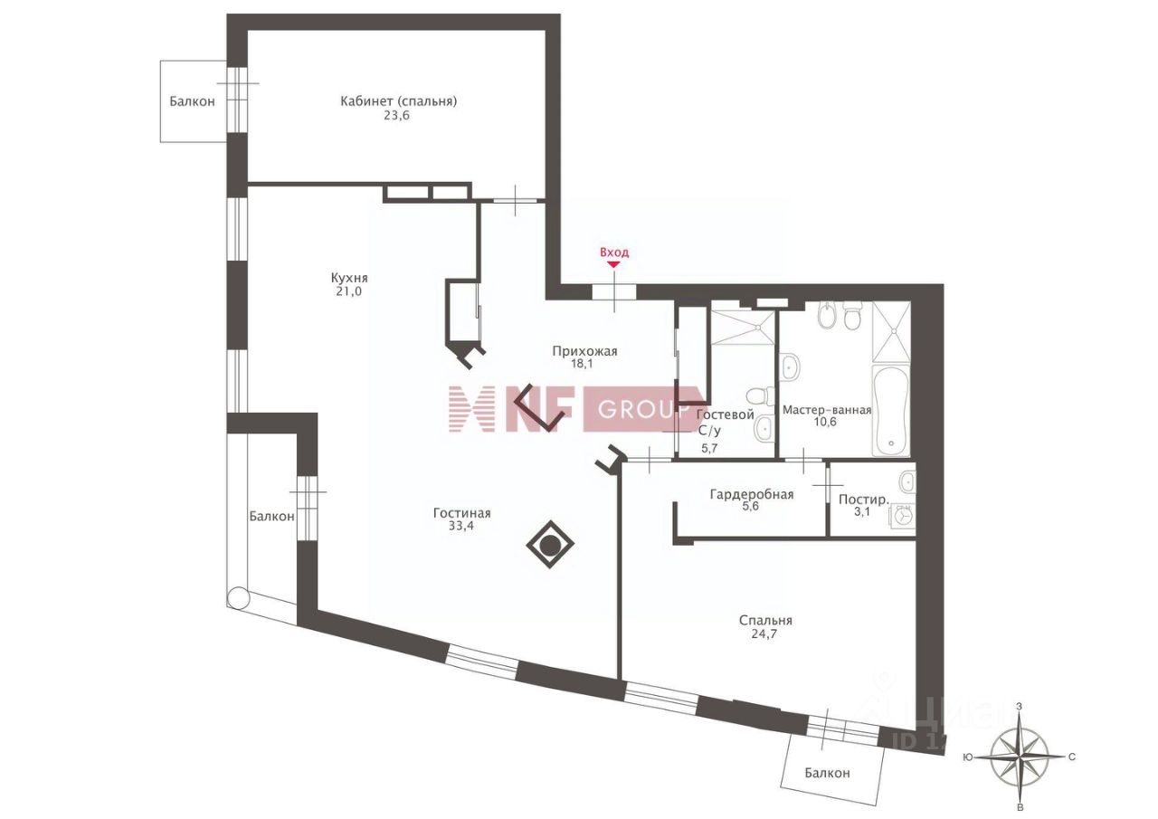 Стильная двусторонняя квартира с окнами на восток и юг. 3 солнечных балкона, на которых поместятся садовая мебель и сезонные цветы. Эргономичная планировка из 2-х отдельных комнат: мастер-спальня со своей гардеробной, постирочной и ванной, кабинет место спокойствия и силы. Просторная гостиная с зонированной кухней общим пространством в 55 кв. метров. В мастер-ванной душевая и ванная. Второй санузел с душевой. Объёмная гардеробная в мастер-зоне. Продуманные шкафы для хранения.