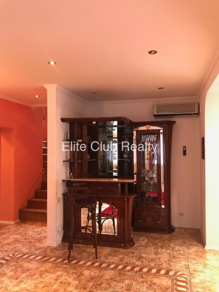 Планировка: * 1 этаж (банный): сауна (с возможностью турецкой бани), душевая, тренажёрный зал, камин, выход в сад. * 2 этаж: кухня, просторная гостиная с камином и барной стойкой, панорамная веранда. * 3 этаж (приватный): 2 спальни, кабинет (можно использовать как спальню), ванная. Экологичный пробковый пол. * Мансарда: бильярдная, комната для пинг-понга. Паркет.