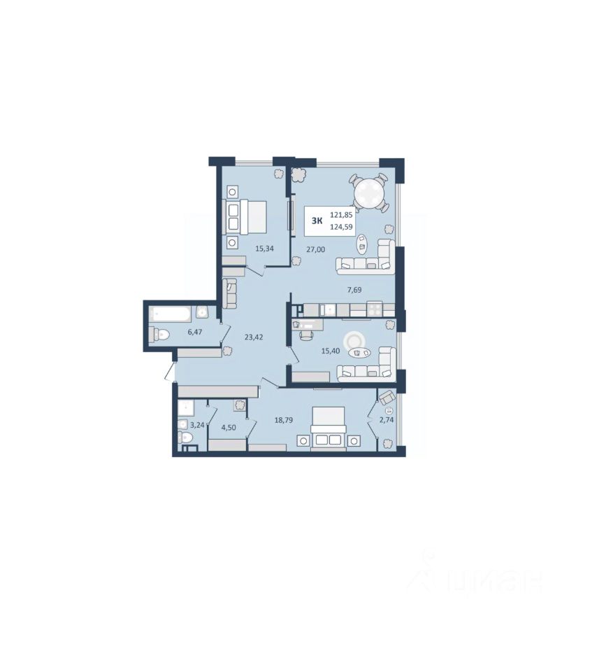 Общая площадь124,59 м2