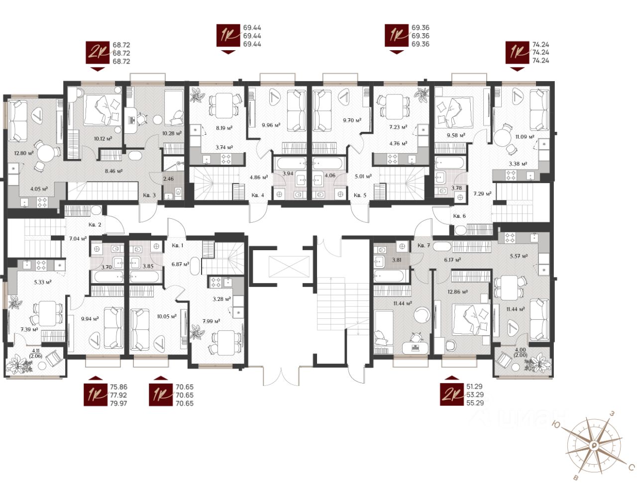 -В клубном доме 34 эксклюзивных лотов разных форматов: одно-, двух-, комнатные и просторные двухуровневые квартиры.