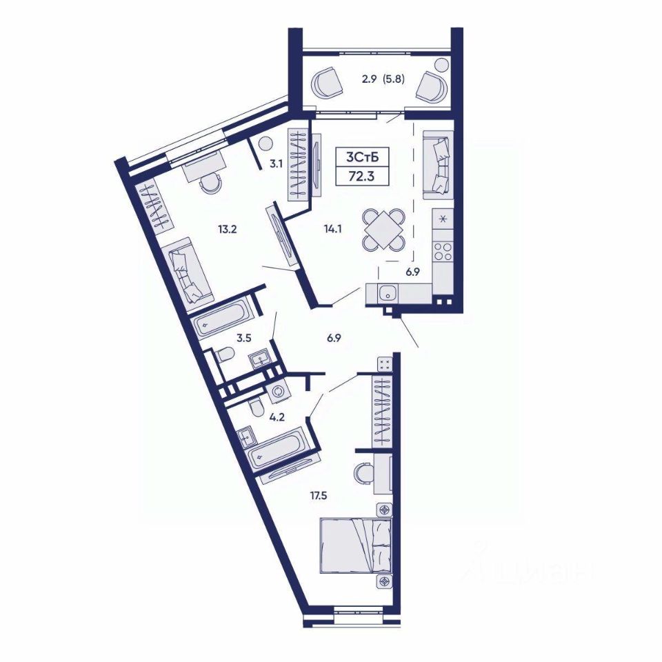 Общая площадь72,2 м2