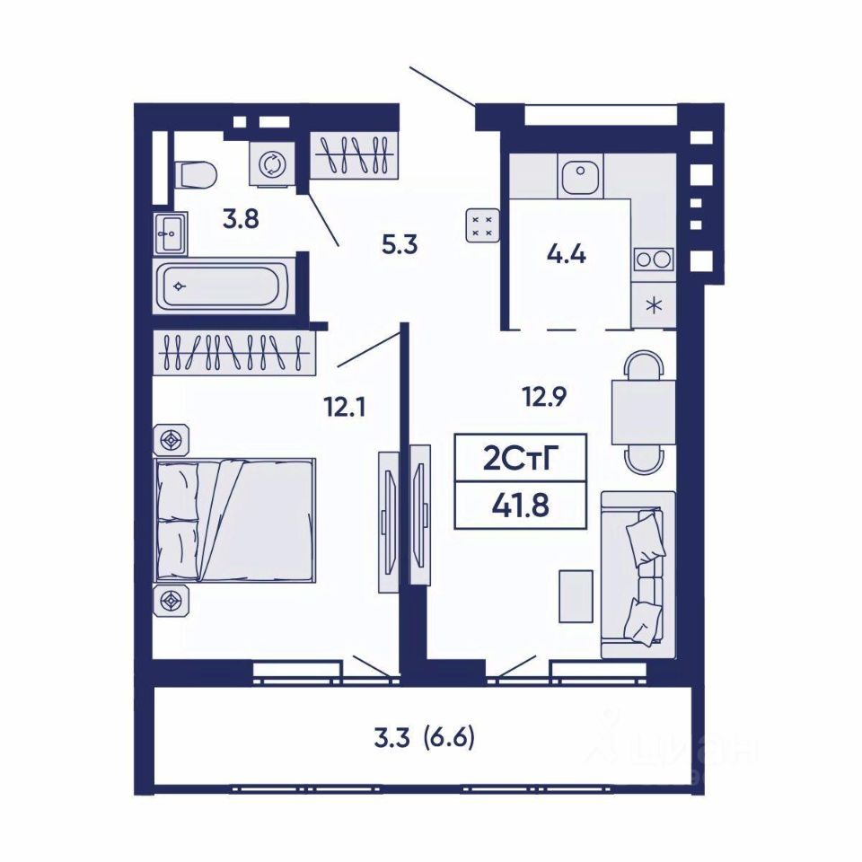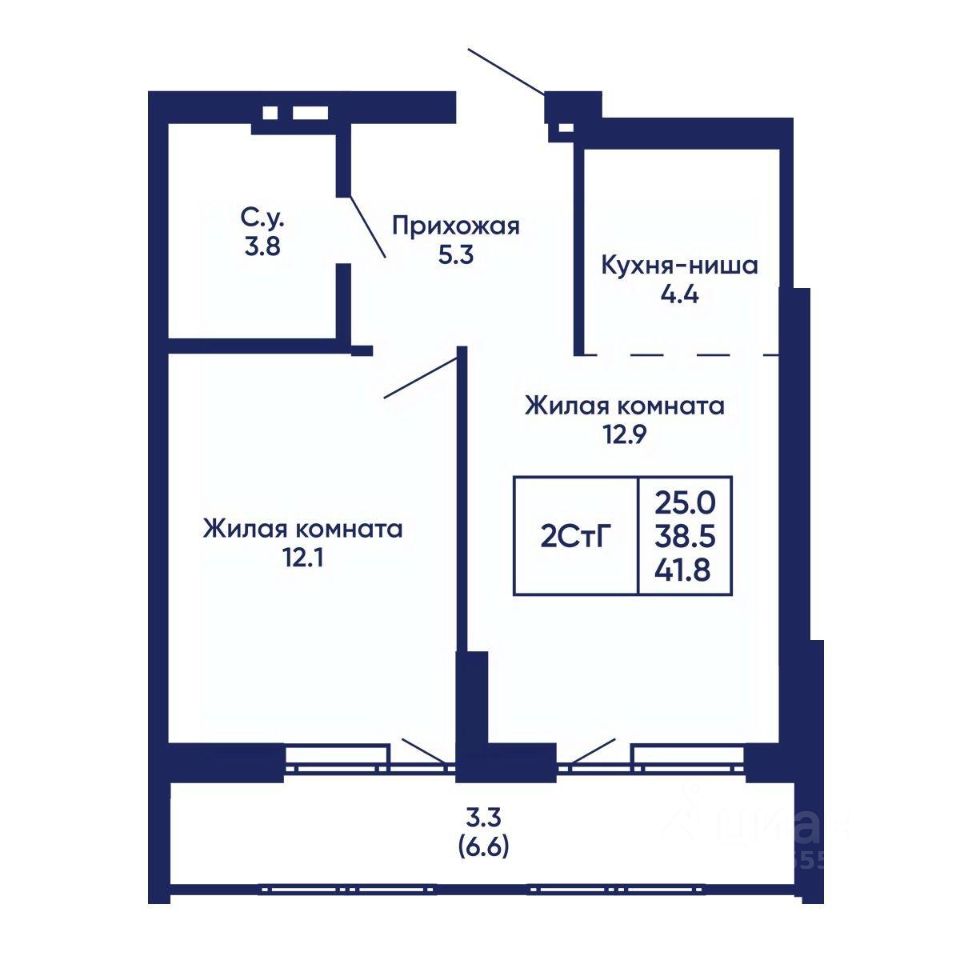Общая площадь41,8 м2