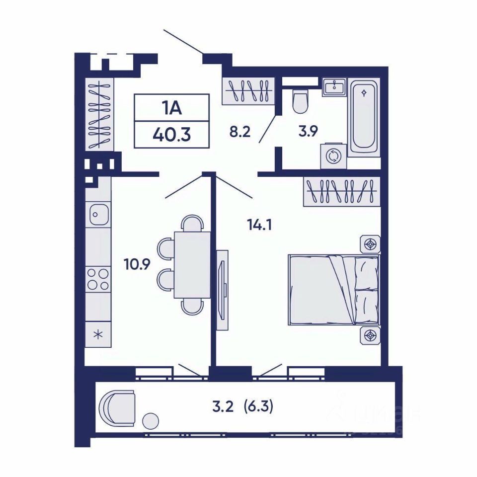 Для Вас в ЖК Gorizont есть квартира с ремонтом (1-комнатная квартира 85, 38,9 кв²)!