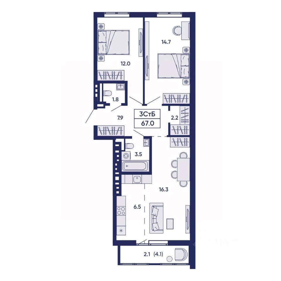 Для Вас в ЖК Gorizont есть квартира с ремонтом (1-комнатная квартира 85, 38,9 кв²)!